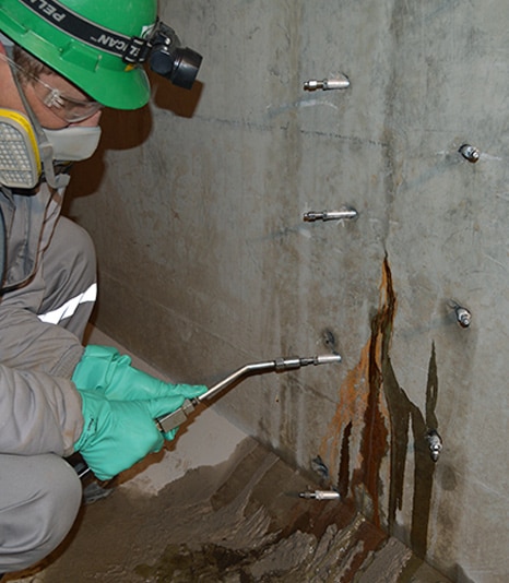 Oferecemos uma Tecnologia Inovadora para eliminação de infiltrações em estrutura de concreto maciço, através de processo não destrutivo.